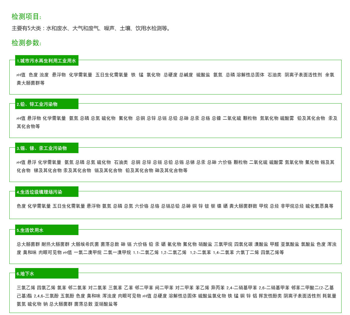 公司配置了標準化的實驗室,麵積400多平方,建立了套完善的質量保證體係,先後投放了(le)國內(nèi)外的檢測儀器、設備,比如島津氣相色譜儀、原子吸收分光光度計、原子熒光光度計(jì)、紫外分光光度計、化學需氧量(COD)測定儀、、紅外測(cè)油儀、離子色(sè)譜儀、場所有害(hài)因素現場檢測儀(yí)等,並擁有近百(bǎi)台的分析儀器,可以實現檢測項目(mù)達3000多種。